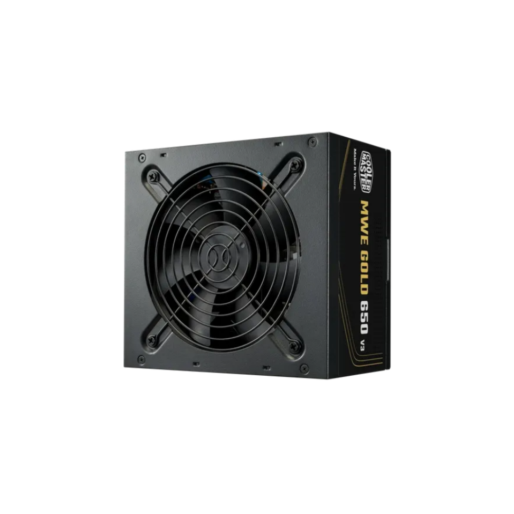 Fuente de alimentación Cooler Master MWE Gold de 650 W, diseñada para ofrecer eficiencia energética y estabilidad en equipos de escritorio modernos. Su certificación 80 Plus Gold asegura un mejor aprovechamiento de la energía y un funcionamiento confiable para configuraciones de gaming y trabajo exigente.