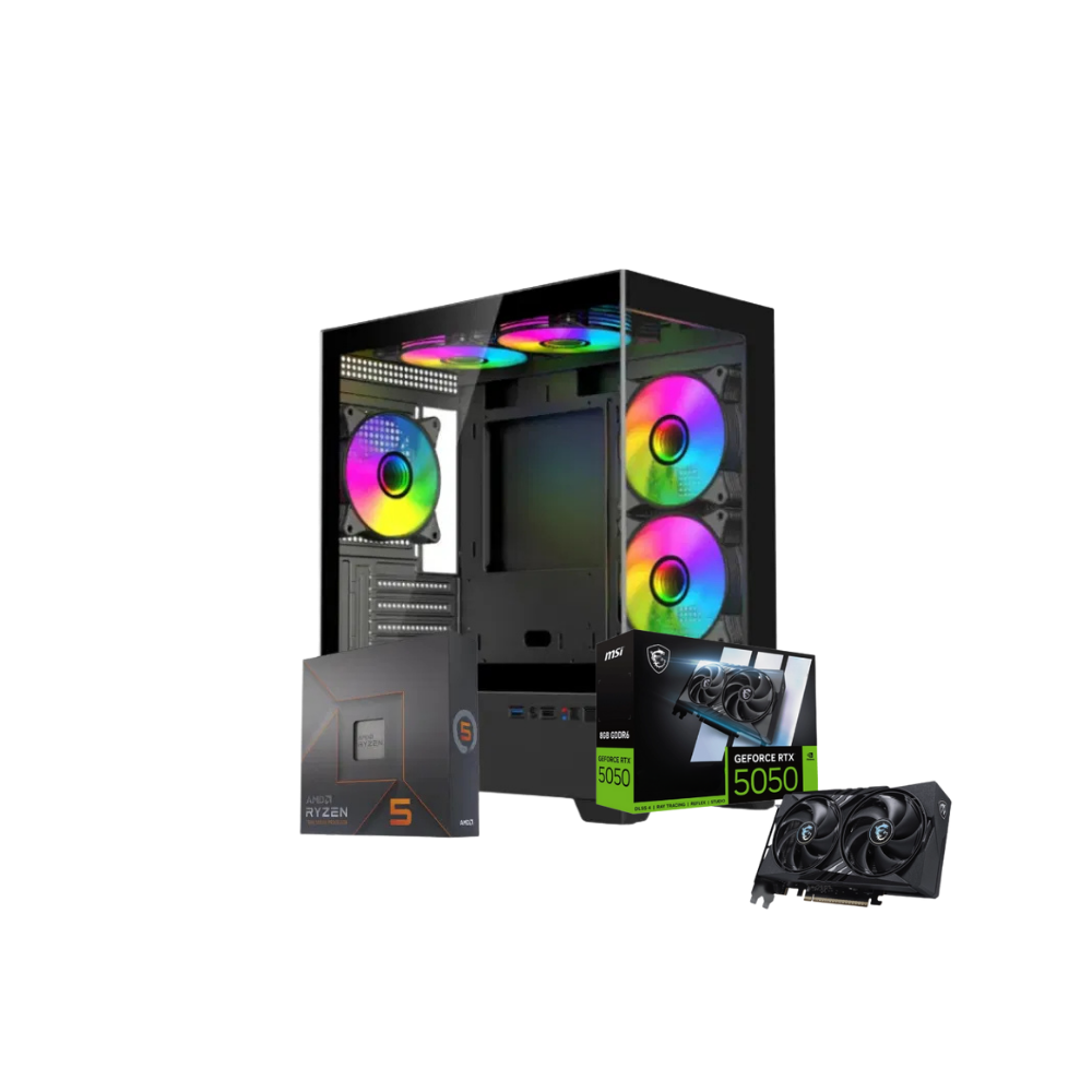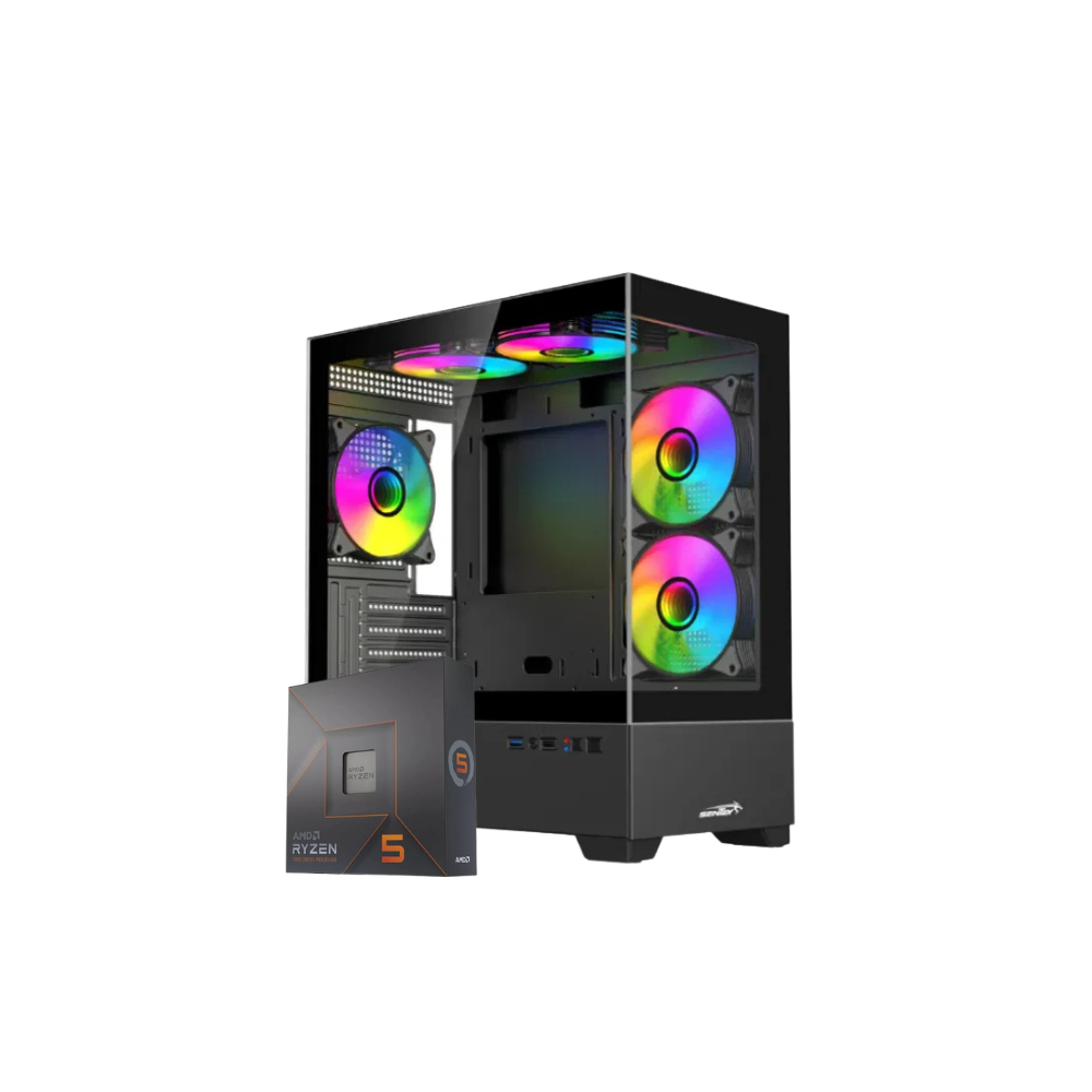 PC gamer orientada a alto rendimiento, ideal para gaming moderno, trabajo gráfico y uso intensivo. Incorpora el procesador AMD Ryzen 5 7600 con gráficos integrados AMD Radeon™, junto a una placa de video dedicada de 8GB, permitiendo jugar en 1080p y 1440p con gran fluidez. La memoria DDR5 de 16GB ofrece mayor ancho de banda y respuesta general del sistema, mientras que el SSD M.2 NVMe garantiza arranques rápidos y cargas ágiles. El gabinete con iluminación ARGB y múltiples ventiladores junto a una fuente de 700W aseguran correcta refrigeración y estabilidad eléctrica en sesiones exigentes.