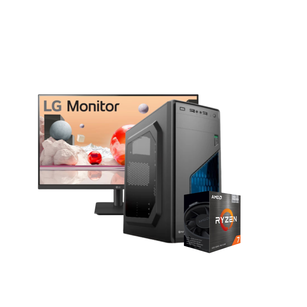 PC AMD orientada a alto rendimiento general para trabajo, estudio, multitarea y uso intensivo. Equipada con AMD Ryzen™ 7 5700G con gráficos integrados AMD Radeon™, ofrece excelente potencia sin necesidad de placa de video dedicada. La memoria DDR4 de 32GB garantiza fluidez en aplicaciones exigentes, mientras que el SSD NVMe acelera el arranque del sistema y la carga de programas. El monitor LG Full HD de 24 pulgadas con 100 Hz brinda una experiencia visual cómoda y fluida tanto para productividad como para entretenimiento.