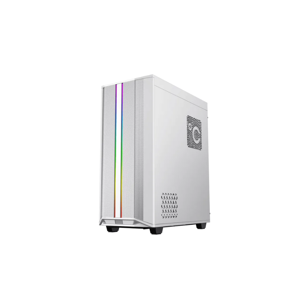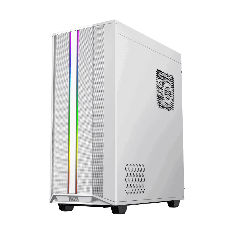 Incluye un ventilador ARGB preinstalado, permitiendo efectos de iluminación personalizables para crear una estética gamer única. Su diseño en blanco proporciona una apariencia moderna y limpia, mientras que su construcción robusta garantiza durabilidad.